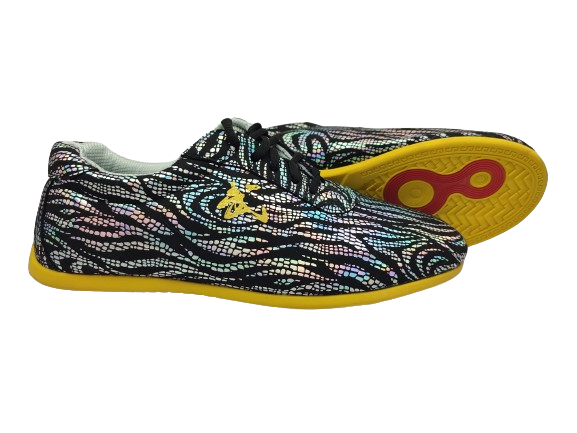Los tenis tienen un diseño tradicional con el carácter "Wu", que significa "marcial", y nubes de oro en el exterior del par.